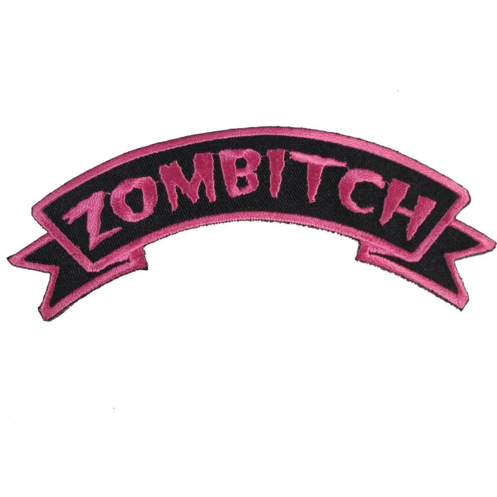 Kreepsville 666 zombitch arch patch, embroidered iron on patch, size approx 5 in wide x 2 in high 12cm w x 5cm h. See our patch instruction page for application help.