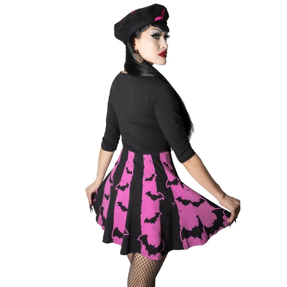 Bat Stripe Pink Skater Dress