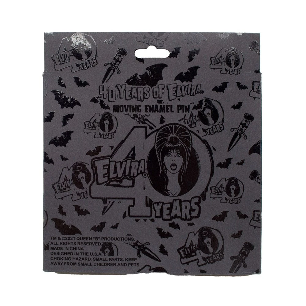 Celebrate 40 years of Elvira Mistress of the Dark with this officially licensed jumbo pin! Pin Features a commemorative 40 year design with red glitter enamel and measures a huge 3.25″ x 2.5″ inches!