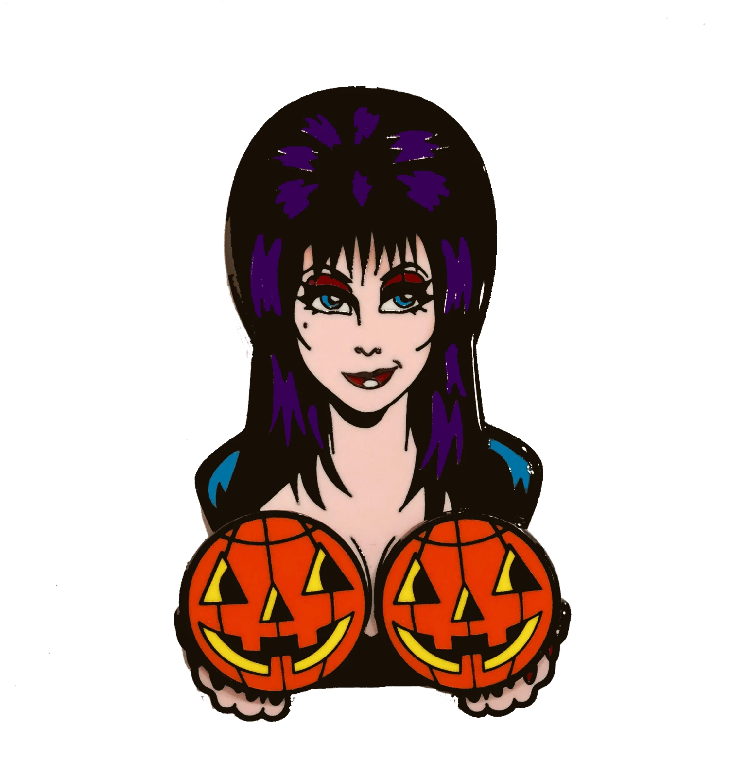 Officially licensed Elvira Mistress Of the Dark pin. It’s halloween everyday with this playful spinning pumpkin pin! Pin measures apox. 2.5 in buy 1.5 in.