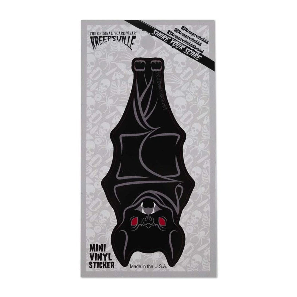Let your bat side hang with Kreepsville’s Hanging Bat Sticker. This batty sticker is made with a durable curse-resistant and water-resistant vinyl perfect for indoor or outdoor use. The acrylic-based permanent adhesive will easily stick to any surface: crypt, car, coffin, water bottle, skateboard, helmet, laptop, tablet, fridge, headphones, phone case, notebook, etc. Size approx. 3.1″ (8cm) x 1.4″ (3.6cm). Printed in the USA.