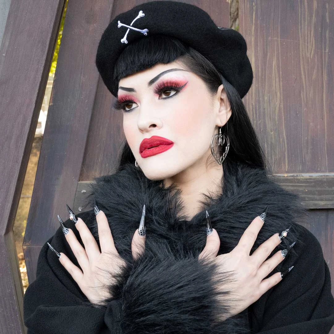 Kreepsville’s Skulls and Bones beatnik beret hat is the perfect hat is perfect for summoning some spooky scary skeletons, featuring anatomical classic skull and crossbones repeat print on the back and small crossbones embroidery on the front to embrace your inner goth any time. Made out of 90% wool and 10% polyester blend, it’s comfortably snug and one size fits most.
