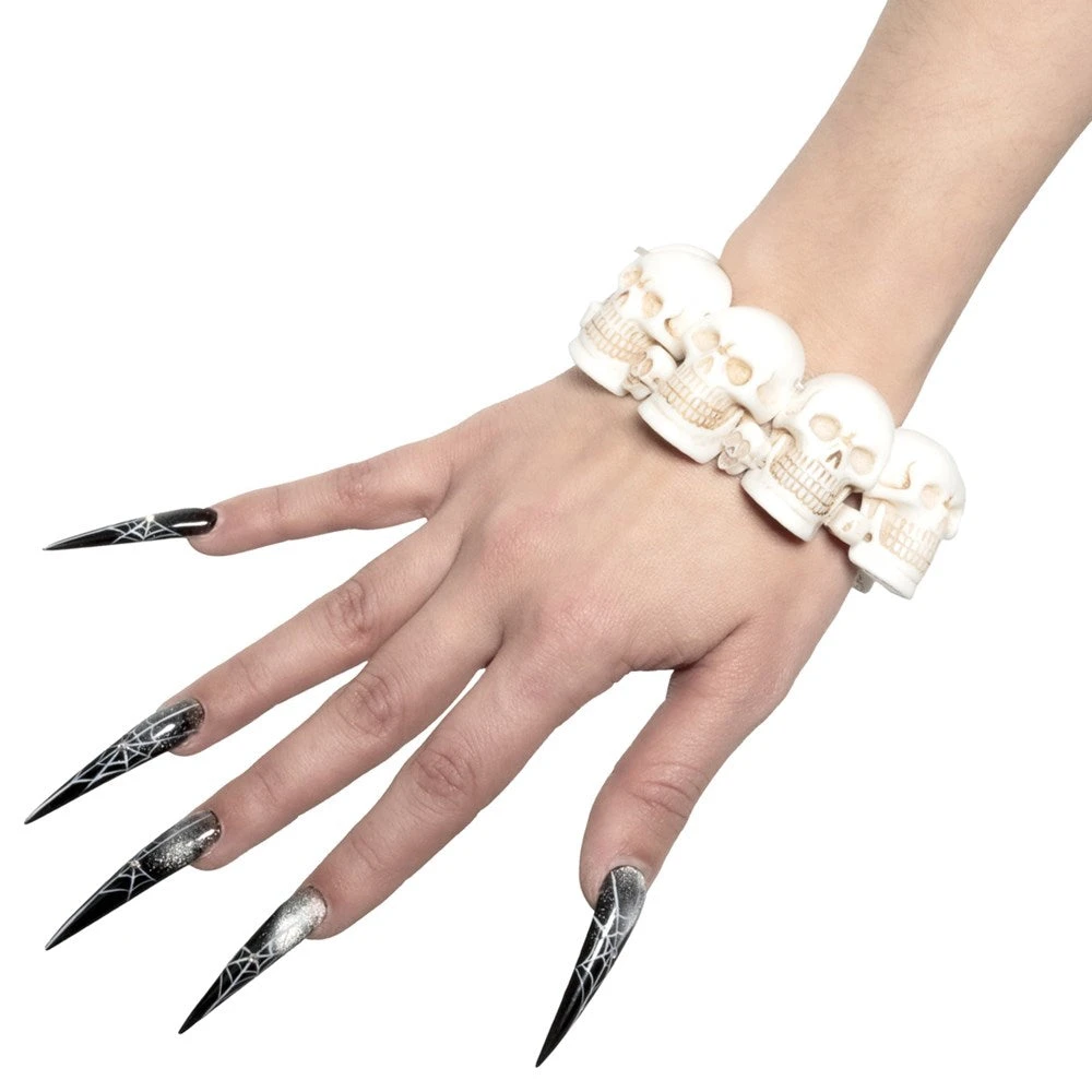 Kreepsville 666 Skull Collection Bracelet in white, elasticated bracelet, diameter approx 8cm